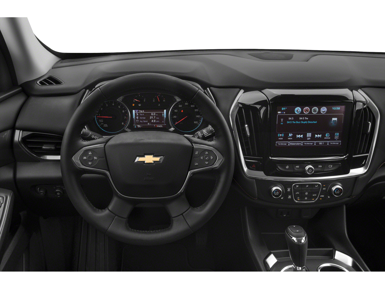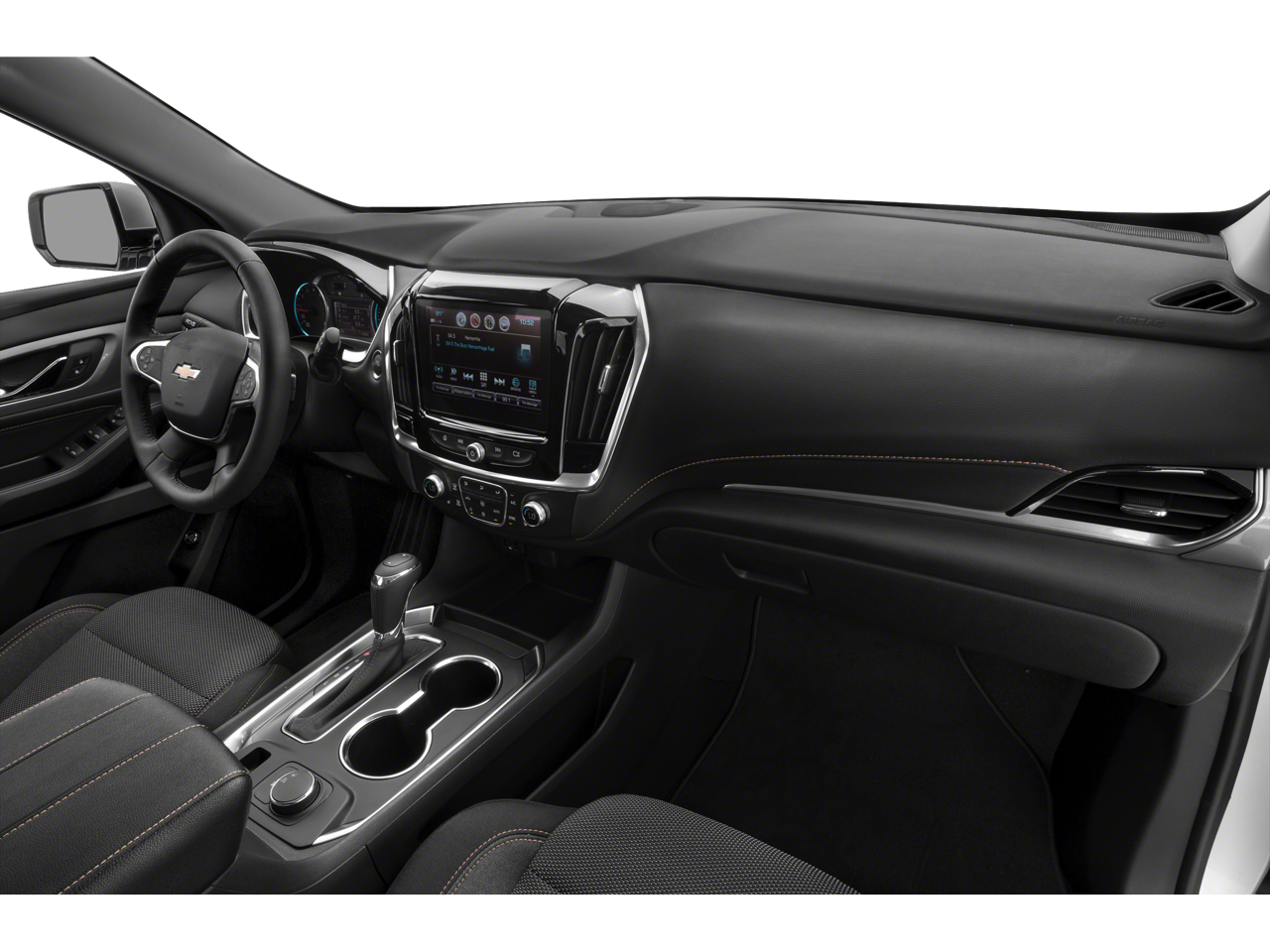 Tilt Steering Column, Rear Window Defogger, Leather-Wrapped Steering Wheel, Power Door Locks, Power Windows, Satellite Radio Capability, Tire Pressure Monitoring System, Roof Rails, Fog Lamps, Power Heated Exterior Mirrors w/Signals, Power Driver Seat w/Power Lumbar, Premium Cloth Seating Surfaces, Power Assisted 4-Wheel Disc Anti-Lock Brakes, LATCH Child Safety System, Rear Manual Liftgate, Steering Wheel Mounted Cruise Control, Rear Vision Camera, 7-Inch Color Touchscreen, HID Headlamps, AM/FM Audio System, Stability & Traction Control, Steering Wheel-Mounted Audio & Phone Controls, Android Auto & Apple Carplay Capability, Bluetooth® Phone & Streaming Capability, Driver Information Center w/3.5-Inch Display, Keyless Open & Start, 2nd-Row Captain Chairs, Stop/Start Technology, Teen Driver Technology, 4g LTE & Wi-Fi Hotspot Capability, Chevrolet MyLink Audio Radio, 6-USB Ports, Front/Side/Head Curtain Side Airbags, 2nd/3rd-Row Flat-Folding Seats, Traction Mode Select